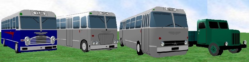 ___A régi mozdonymodellekhez hozzátartoznak a pálya mentén szaladgáló régi Ikarus-buszok és Csepel-teherautók is. Ezt a négy modellt készítettem utoljára, és most ezeket is hozzáférhetővé teszem. Balról jobbra: